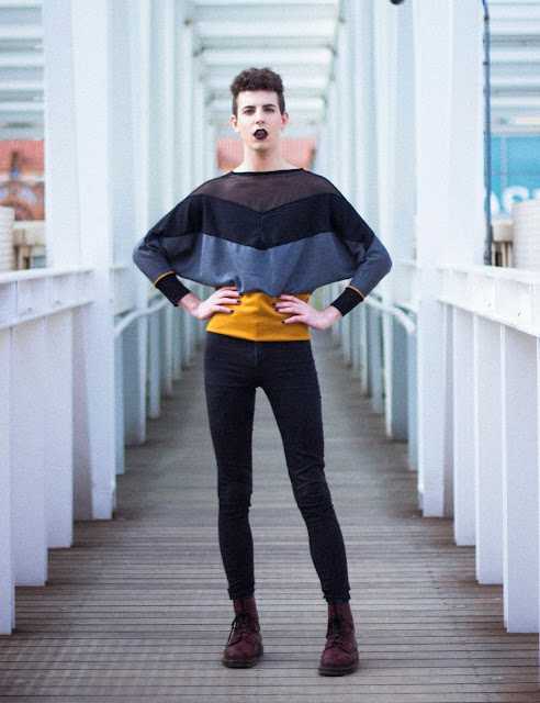 Last week I modeled for a classmate who designed and made this sweatshirt / jacket that I'm wearing in the photos, it is reversible, the zipper can go in front or behind.
